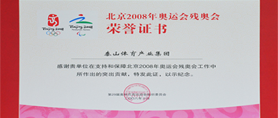 第二十九届奥林匹克运动会组织委员会为泰山集团颁发北京2008年奥运会残奥会荣誉证书