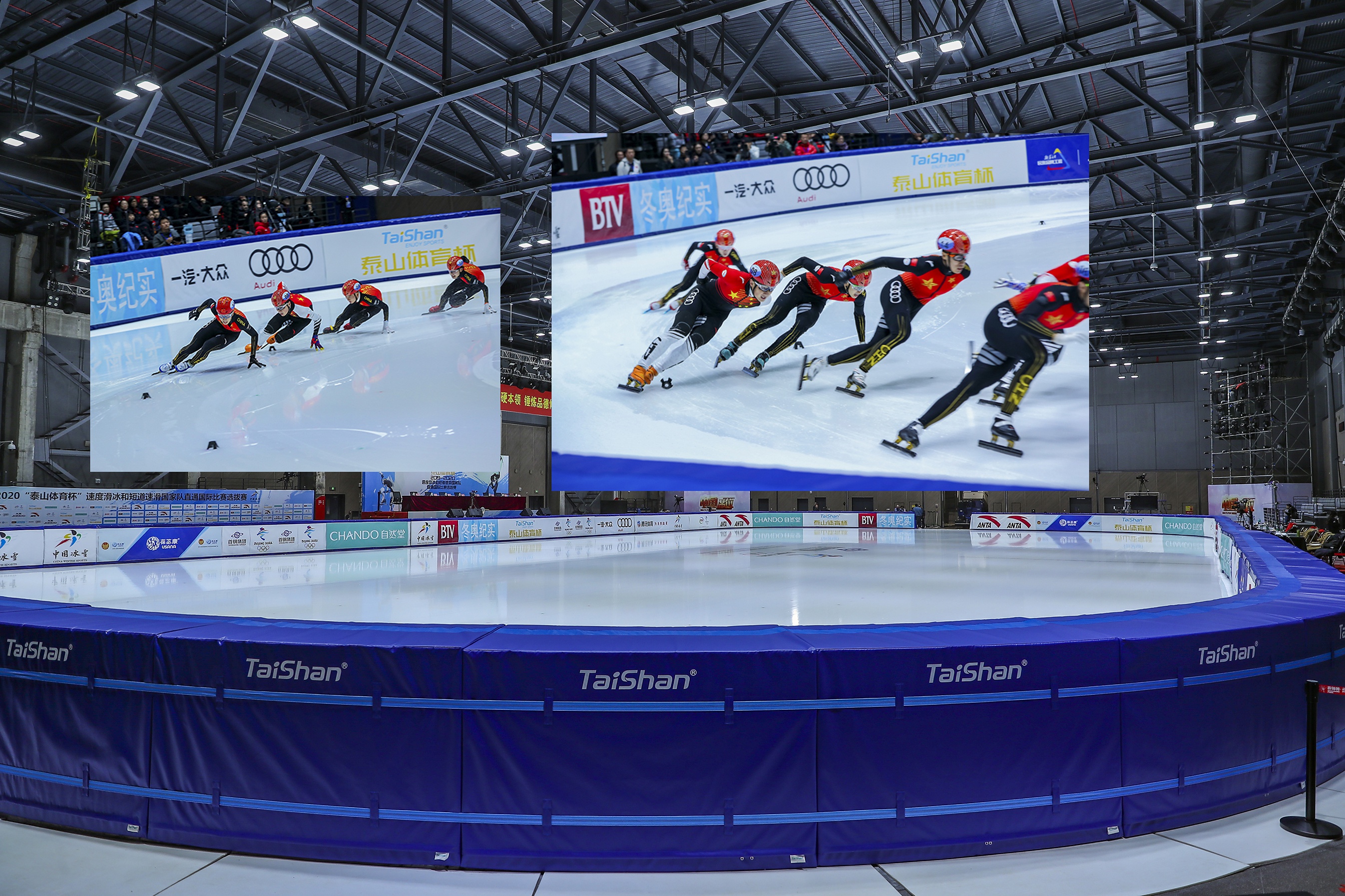 2019年泰山出色的服务了意大利大学生运动会、第七届武汉世界军人运动会等国际性赛事。10月5日“世界杯官网中文版杯”速度滑冰和短道速滑国家队直通国际比赛选拔赛开幕,泰山自主研发的冰雪运动防撞界墙系列产品,首次亮相国际比赛,开创了冰雪世界的新未来!