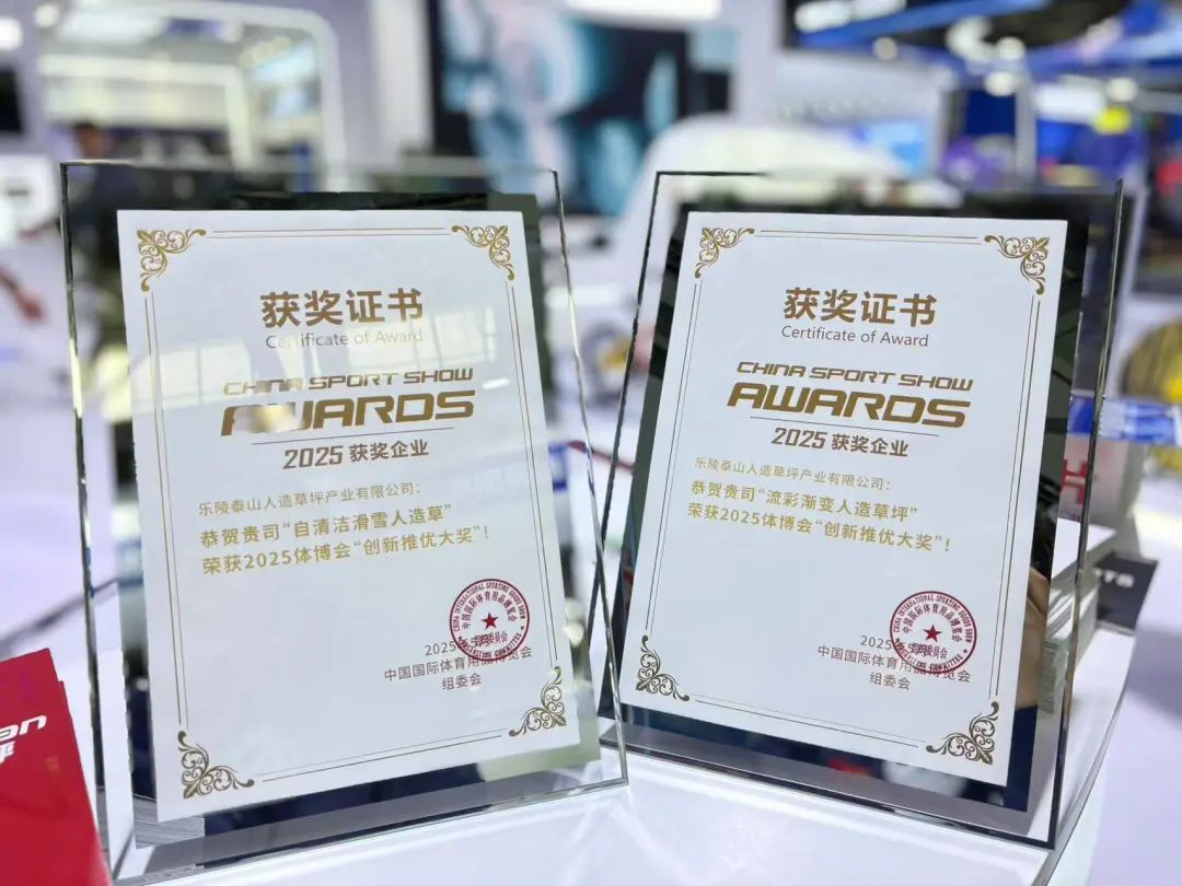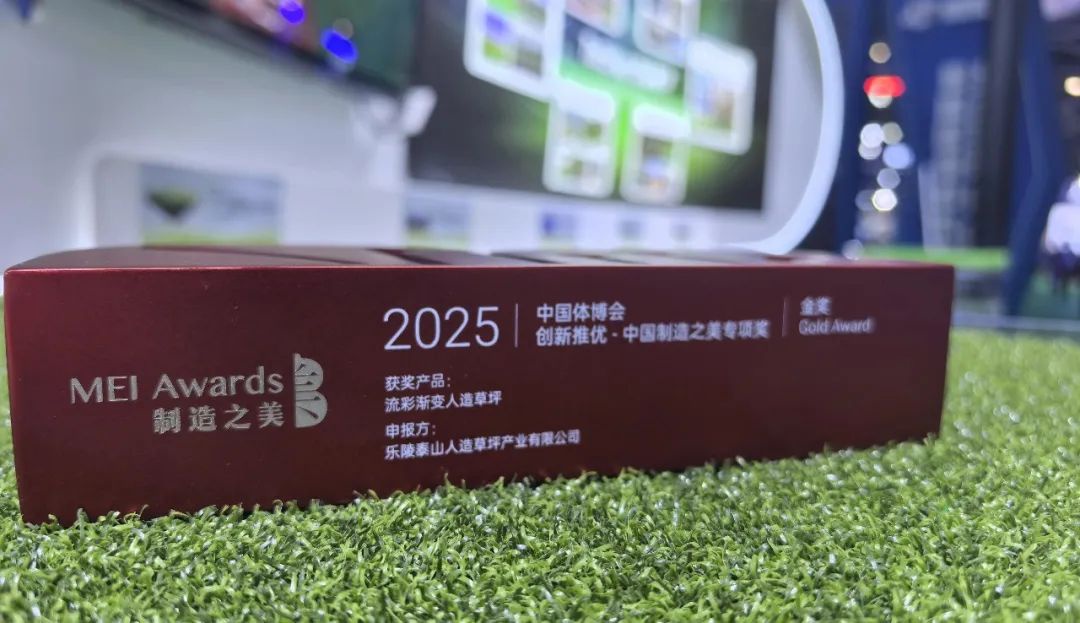 在这次评选中泰山人造草坪的流彩渐变人造草坪产品,也获得中国体博会创新推优-中国制造之美专项奖”金奖。流彩人造草坪是一款突破传统的新型艺术草坪,采用独特工艺实现色彩渐变效果,使图案呈现立体三维观感,兼具实用功能和艺术价值。相比普通人造草坪,它能逼真还原油画、国画等艺术风格,适用于运动场地、家居装饰、公共空间美化及商业宣传等多个场景。产品具有经久耐用、环保可回收、耐磨防尘等优势,使用寿命可达数十年。